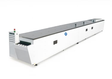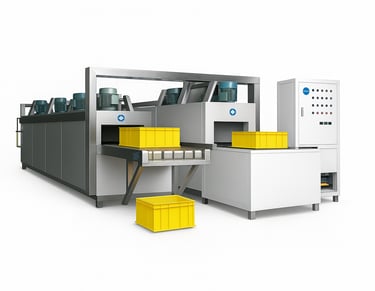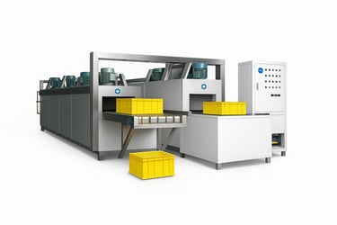 永技輸送帶型清洗機採連續式自動清洗流程設計,可依產品特性搭配超音波、水洗、風刀及熱烘等多段功能。設備具備高穩定輸送系統,確保清洗品質一致與高產能輸出,適合大量連續生產。